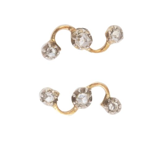 Pendientes de pp. S. XX con tres diamantes adornando línea en forma de "S"