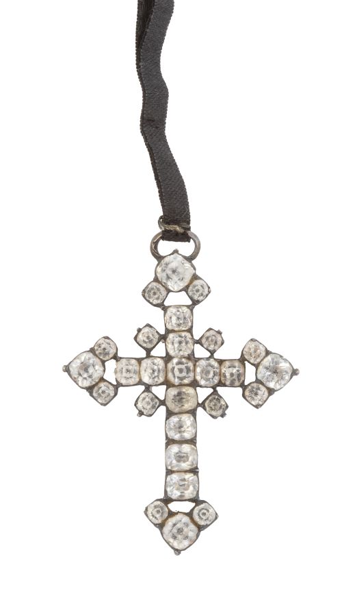 Home / SUBASTA DE JUNIO 2025 / Cruz colgante de plata y strass S. XIX