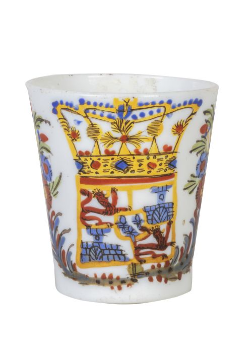 Home / SUBASTA DE JUNIO 2025 / Vaso en opalina con decoración esmaltada del escudo real B