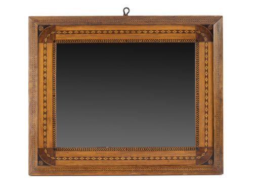 1031. Espejo Carlos IV de madera con marquetería de distintas maderas.