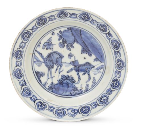Home / SUBASTA DE JUNIO 2025 / Plato de porcelana esmaltado en azul y blanco. Con marca en