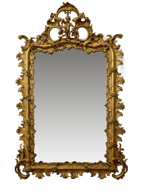 Home / SUBASTA DE JUNIO 2025 / Espejo de madera tallada y dorada con copete con niño.Tra