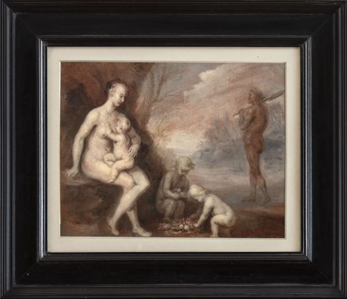 En el reverso con etiquetas inscritas: "Colnaghi Maastricht, ref. 1490", "Colnaghi New York, ref. 1736" y cartela de exposición: "Otto Van Veen/Leiden 1556- 1629 Brussels/Adam and Eve (?)/Oil on paper, laid down. 195 x 245 mm).
