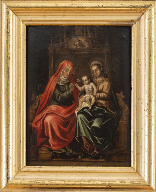 Home / SUBASTA DE JUNIO 2025 / ESCUELA ESPAÑOLA, SIGLO XVIIVirgen con niño y Santa Ana