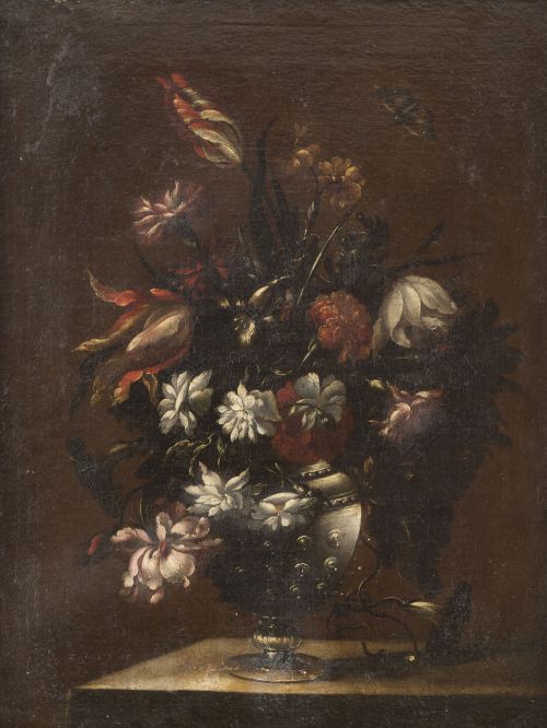 Desde el punto de vista estilístico y compositivo se puede relacionar con los dos lienzos conservados en el Museo Diocesano y en el Catedralicio de Valladolid (Ver: Jesús Urrea Fernández, Enrique Valdivieso González: Pintura barroca vallisoletana. Universidad de Sevilla, 2017, pág. 244 y 245, fig. 140 y 141). En las tres obras, podemos apreciar la misma tipología del jarrón de cristal sobre un pedestal de piedra, con un mayor número de flores en la obra que presentamos.