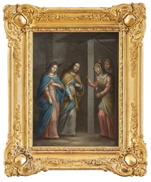 De esta misma serie se conocen otros cuatro óleos sobre cobre de igual formato, también firmados, fechados en 1765 y localizados en México. Representan las escenas del Nacimiento de la Virgen, Los Desposorios de la Virgen, La Dormición de la Virgen y La Asunción de la Virgen. Estas obras fueron subastadas en Jackson’s el 3 de junio de 2014 (lote 00351). Las cuatro piezas que ahora presentamos completarían esta notable serie mariana.
