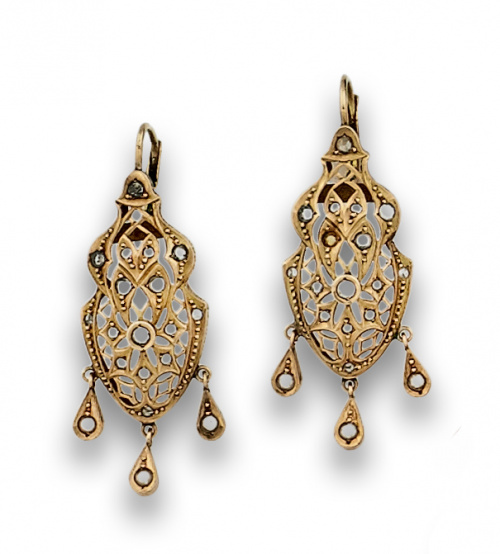 Home / Subasta 9 y 10 de marzo de 2016 / Pendientes largos con diseño calado y zafiros blancos en or
