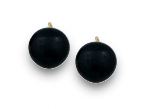 31. Pendientes circulares de pps. s. XX con botón de ónix en oro de 18K.