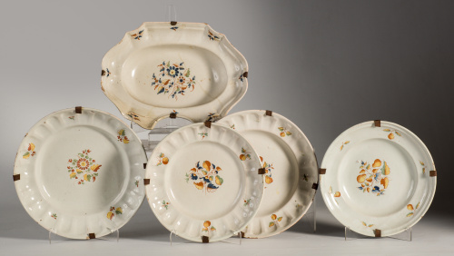 Plato en cerámica de la serie del ramito.Alcora, ff. S. XVIII..