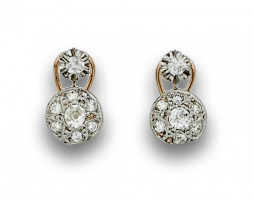 Pendientes de pp s.XX con rosetones de brillantes y brillante superior.