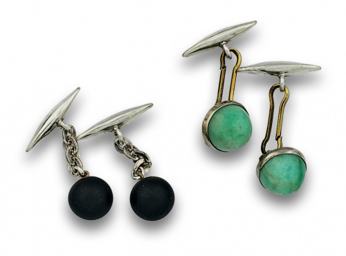 Dos pares de gemelos con cabuchón de amazonita y esfera de azabache respectivamente.