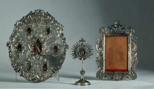 Home / Subasta 9 y 10 de marzo de 2016 / Relicario con marco de sol en plata, rematado por una cruz,