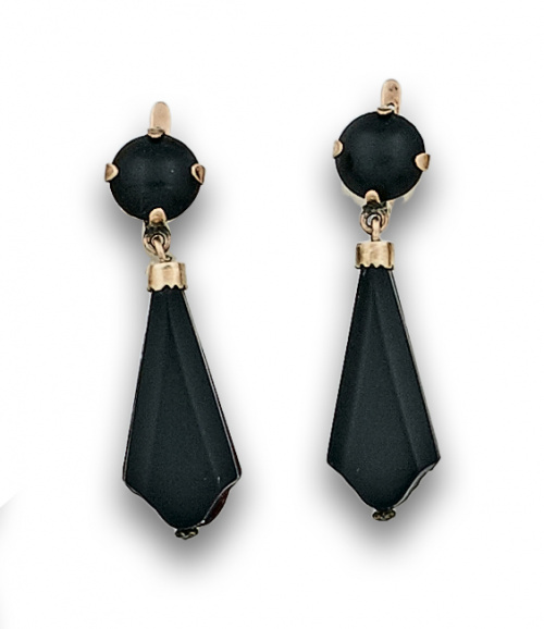 5. Pendientes largos pps s XX de azabache con botón y perilla facetada .