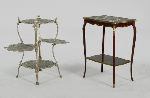 “Stand” para plantas o mesita auxiliar de metal plateado con patas rematadas en esfinges y pies de garra.h. 1900.