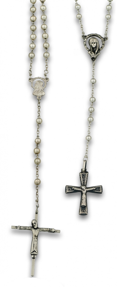 Dos rosarios con cuentas esféricas en plata lisa.