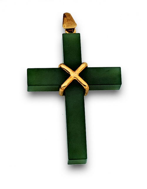 Home / Subasta 25 y 26 de mayo de 2016 / Cruz colgante de ágata verde y oro de 18K.
