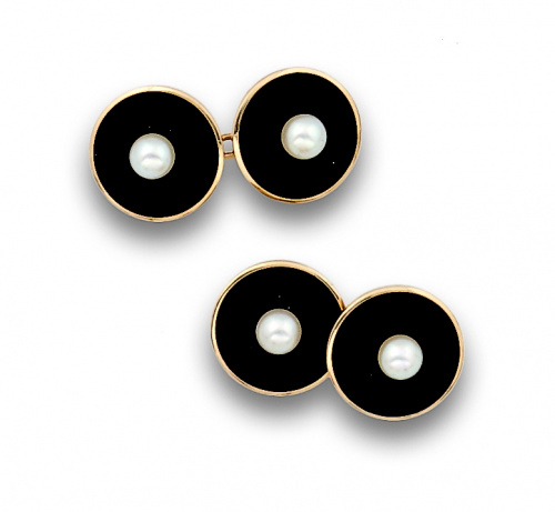 Home / Subasta 25 y 26 de mayo de 2016 / Gemelos dobles con círculos de ónix y perlas centrales en