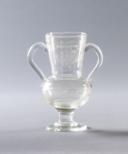 Copa a la façon de Venice en cristal soplado en azul y rojo S. XIX..