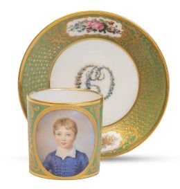 Jarrito con tapa de porcelana esmaltada con flores, marcada en el reverso.Sévres, S. XVIII.