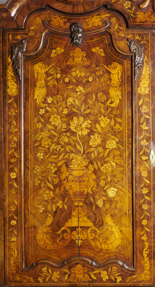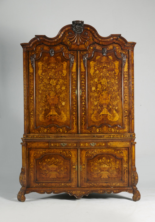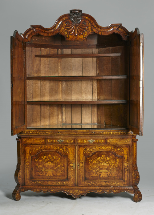 Armario esquinero en raíz de nogal y marquetería de frutalTrabajo holandés, S. XIX..