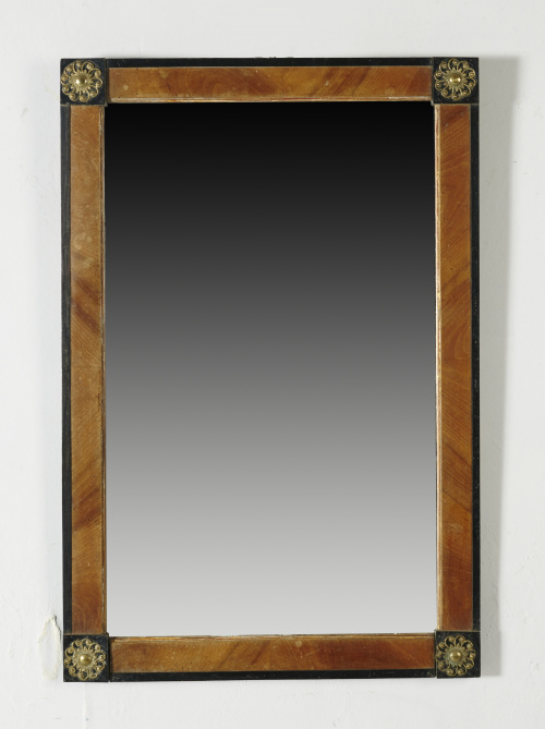 Espejo Carlos IV de madera, madera dorada con remates de flores giradas en las esquinas.Trabajo español, S. XIX.