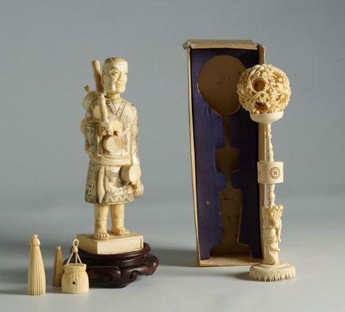 Altura: 29,8 cms. Con tres cestos de marfil.