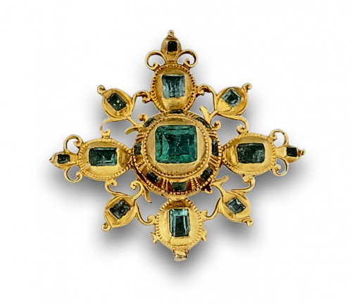 6. Colgante Cruz de esmeraldas s.XVIII en oro de 18K.