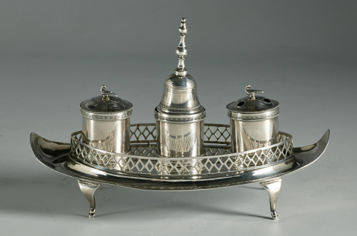 Escribanía fernandina de plata punzonada, F. Martos, Diego de la Vega y Torres.Córdoba, 1818..