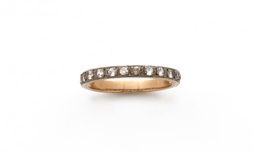 21. Sortija media alianza de zafiros blancos en oro de 18K.