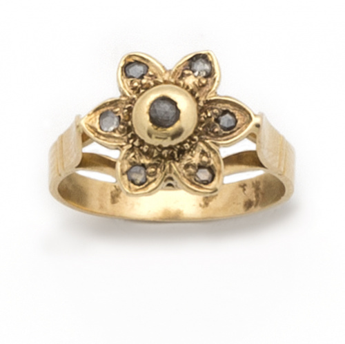 7. Sortija flor s.XIX con diamantes talla rosa en oro de 18K.