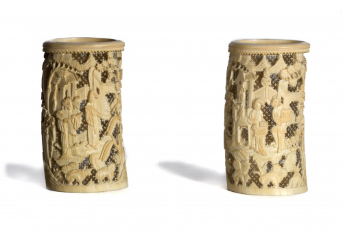 Bote para pinceles en marfil tallado y calado.China, ff. S. XIX - pp. S. XX.