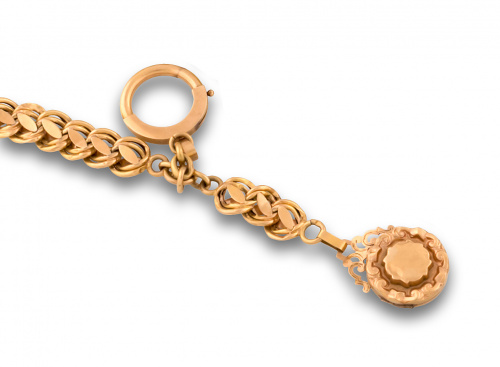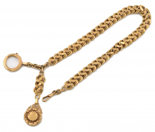 Leontina trenzada en oro de 18K de pps s XIX con guardapelo colgante.