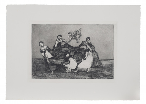 Conjunto de 18 aguafuertes y aguantintas sobre papel Arches con marcas de agua de la Calcografía Nacional y de 1970. Papel: 37,5 x 52,5 cm.; huella: 24,5 x 35 cm. Estampación de 1970 de la Calcografía de la Real Academia de Bellas Artes de San Fernando, la última que se ha hecho con las planchas originales de Goya.