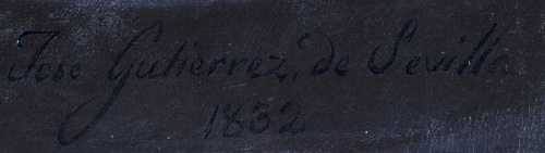 Óleo sobre lienzo. 120 x 90 cm. Firmado: “José Gutiérrez de Sevilla” y fechado en 1832. BIBLIOGRAFÍA - Arias de Cossío, Ana María, José Gutiérrez de la Vega. Pintor romántico sevillano (Fundaciones Vega-Inclán, Madrid, Patronato Nacional de Museos, 1978, catálogo 29, pág. 132, figura 92. El 30 de junio de 1832 la Comisión evaluadora de la Real Academia emite su dictamen favorable con la totalidad de los nueve votos destacando en particular el mérito y novedad que ofrece la obra de don José Gutiérrez. El 4 de julio se le comunica que la “Real Academia de San Fernando, en Junta ordinaria del 1º del corriente, se sirvió crear a Vd. Académico de Mérito”. Al decir de Arias de Cossío, “hay un buen número de cuadros [de ese año] que testimonian su rápida conquista de prestigio en los medios madrileños; es el caso, por ejemplo, del retrato pintado en 1832 del Comisario General de Cruzada don Manuel Fernández Varela (...), otro retrato del Marqués de Valverde, fechado también en 1832; de este mismo año el retrato de Señora actualmente en la colección Maura, de Madrid”. Especial interés tiene este retrato desde el punto de vista técnico; se percibe un cierto punto de inflexión al pasar de su estilo dibujístico anterior a unas pinceladas largas y deshechas, especialmente visibles en el uniforme, empapado ya de las corrientes inglesas y flamencas.