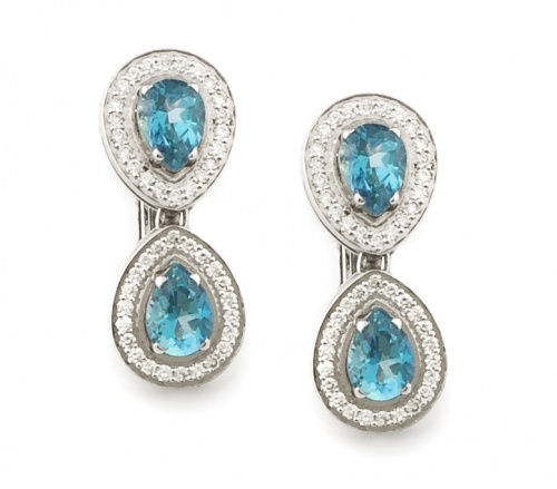 Home / Subasta 13 y 14 de diciembre de 2017 / Pendientes con dobles perillas de topacios azules orladas d