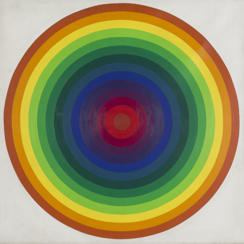 Acrílico sobre lienzo. 70 x 70 cm. Firmado, fechado y titulado en el reverso. Agradecemos a DªSoizic Oger, directora del Atelier Le Parc por confirmar la autenticidad de esta obra. A petición del comprador se podrá solicitar un certificado de autenticidad. Comencé mis experiencias con el color en 1959 teniendo cuidado de no hacer colorismo. Apliqué al color el mismo trato que a las formas. Si trabajaba en el color no era de ninguna manera para hacer un cuadro en azul, en rosa, cálido, frio, etc. Comencé por utilizar no algunos colores, sino todos. Compuse una gama completa que iba del amarillo al amarillo pasando por el verde, el azul, el violeta, el rojo y el naranja. Los colores eran puros, no estaban degradados ni con negro ni con blanco. Me prohibía emplear otros colores que aquellos elegidos, es decir, una gama de 14 colores que si bien limitados me parecían resumir todas las variaciones posibles de mezclas cromáticas. A partir de esa gama de 14 colores comencé a hacer combinaciones simples de una o dos formas en desplazamiento horizontal, yuxtaponiendo cuatro gamas desarrolladas verticalmente y horizontalmente o en diagonal. Después, sobre esas cuatro gamas yuxtapuestas cubriendo toda la superficie, he superpuesto otras cuatro gamas. Estas combinaciones, nacidas de sistemas rigurosos y simples, eran múltiples. Trabajaba con tempera sobre cartón, en pequeño formato y en plástico transparente. Este último procedimiento, me permitía obtener por superposición toda clase de permutaciones. Luego hice un pequeño aparato con bandas transparentes donde estaban mis gamas de colores y haciéndolos permutar se obtenía un número increíble de combinaciones. En esa época había calculado que para realizar con la tempera las variaciones resultantes de un solo sistema y con un ritmo de dos días por variaciones, me hubiera sido necesario 150 años para ejecutar todas las combinaciones. En todas estas experiencias lo que me impresionaba era la cantidad de cambios posibles contenido en cada programación. Me daba gusto imaginar todas esas variaciones sucediéndose en el tiempo y mis cálculos de probabilidades me llevaban a considerar otro fenómeno: la duración indeterminada. Cada tempera o cuadro producido por tal o cual combinación era para mí un momento particular de todo ese movimiento de colores en cambio continuo que rodaba en mi cabeza. Luego ya al fin de 1959 me puse a imaginar mecanismos para poner en evidencia ese potencial de variaciones, el movimiento real aparece en mis experiencias, la multiplicación de imágenes, la transparencia, el color en el espacio, la luz. Todas esas investigaciones con el color realizadas en 1959 las he retomado en 1969, las he visto, ordenadas, agrandadas, dándoles una forma más clara y a partir de ellas otros temas han surgido y se han desarrollado como por ejemplo los temas: ondas, volúmenes virtuales, la larga marcha, etc. - Julio Le Parc