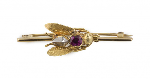 17. Broche de abeja con cuerpo de rubí y diamante de talla rosa