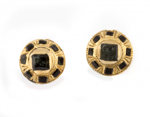 3. Pendientes S. XVIII-XIX con botón de esmeraldas