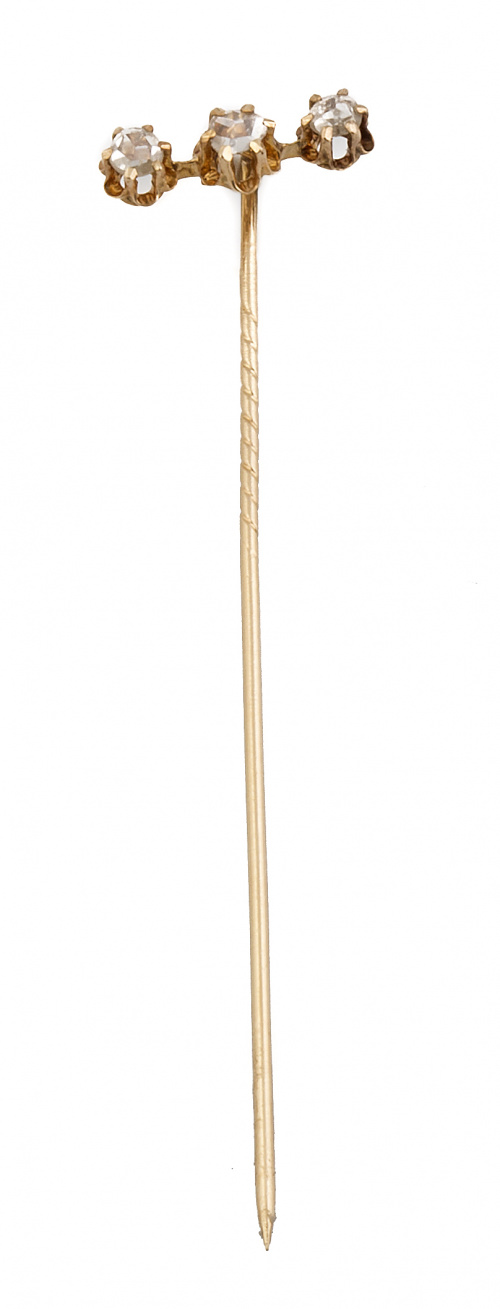 Alfiler de corbata de pp.S.XX con tres diamantes en oro de 18K