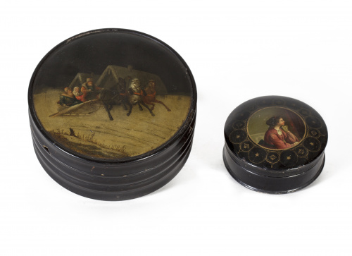 Caja en “papier màche” y lacada con un retrato femenino.Quizás trabajo ruso, S. XIX..