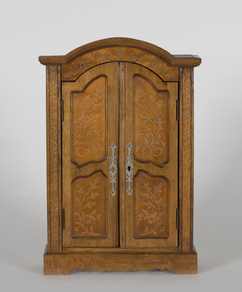 Armario modelo de ebanista de madera de nogal y flores pintadas.S. XIX..