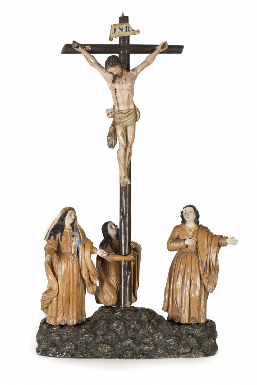 759. Calvario en madera de boj tallada y policromada. Guatemala, S. XVIII.