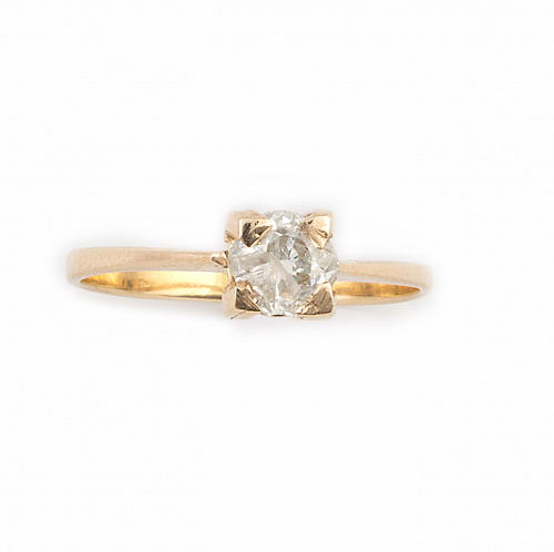 Sortija solitario de brillante de talla antigua de 0,30 ct aprox. En oro amarillo de 19K