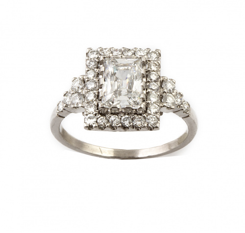 Con orla de brillantes y brillantes escalonados en la montura,realizada en platino