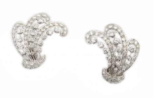 399. Pendientes de estilo años 40 en diseño a modo de abanico de plumas en oro blanco de 18K
