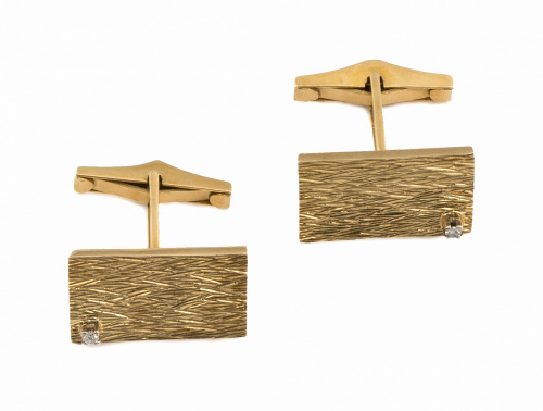 435. Gemelos rectangulares años 60 con decoración matizada y un brillante en lateral