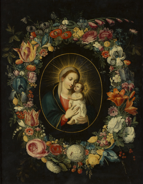 ATRIBUIDO A ANDRIES DANIELS (c. 1580-1640)Virgen con Niño en orla de flores.