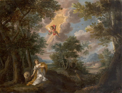 500. ATRIBUIDO AL ANAGRAMISTA A. W. (Esc. flamenca, siglo XVII)Santa Inés en un paisaje.