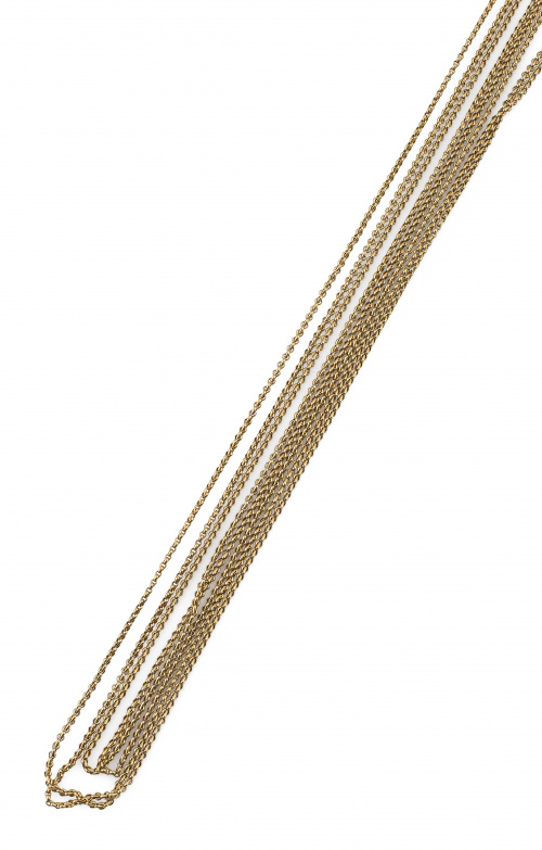 Cadena larga de abanico de pp. S. XX con eslabones redondos en oro amarillo de 18K
