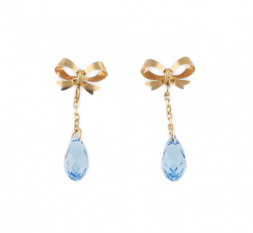 Pendientes largos con lazo y cadena de la que pende topacio azul talla briolette